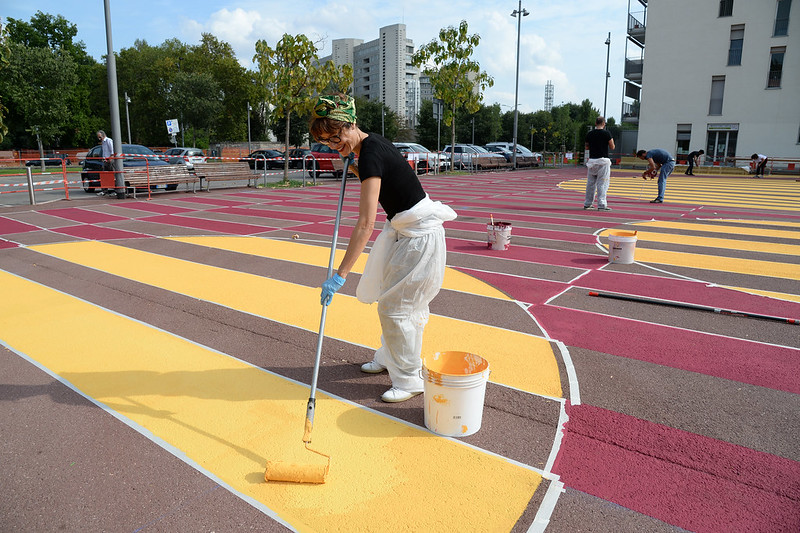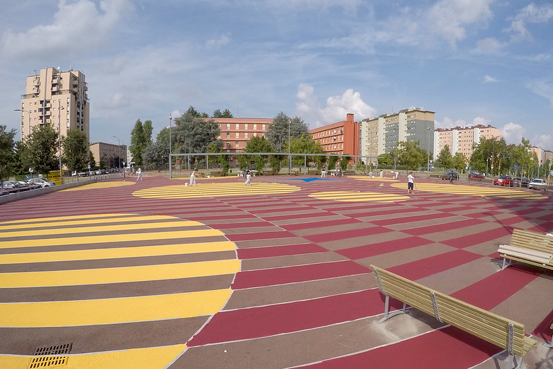 Il restyling, grazie all’ausilio di cittadini volontari che per due giorni hanno realizzato la colorazione, non ha comportato modifiche alla viabilità; una rigenerazione del piazzale anche con l’obiettivo di valorizzare il già esistente progetto di social housing realizzato nel 2014 dalla cooperativa Solidarnosc (CCL) e dalla cooperativa Ferruccio Degradi e favorire vivibilità e inclusione sociale in un quartiere già molto attivo.