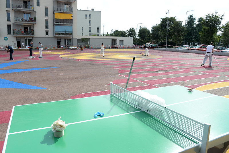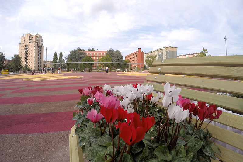 Cassoni per gli orti, tavoli, tavoli da ping pong, panchine, postazioni per il book crossing, pavimentazione colorata. Grazie all’accordo di collaborazione per la cura e rivitalizzazione di Piazzale Cooperazione un’area priva di identità è diventata spazio sociale del quartiere, fruibile da tutte le fasce della popolazione.